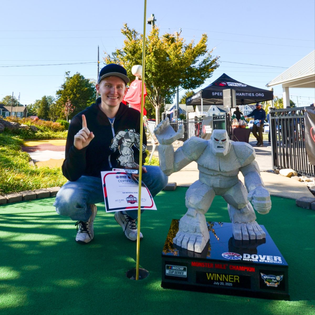 Teams of four will compete in a lighthearted afternoon of mini golf with NASCAR themed fun, featuring music entertainment, appearances by the Dover Motor Speedway pace car, Miles the Monster trophy, food and drink, exciting prizes and of course, ice cream. Top individual and team honors will be awarded, with the tournament’s best performer earning a miniature version of the Miles the Monster trophy, one of NASCAR’s top prizes.