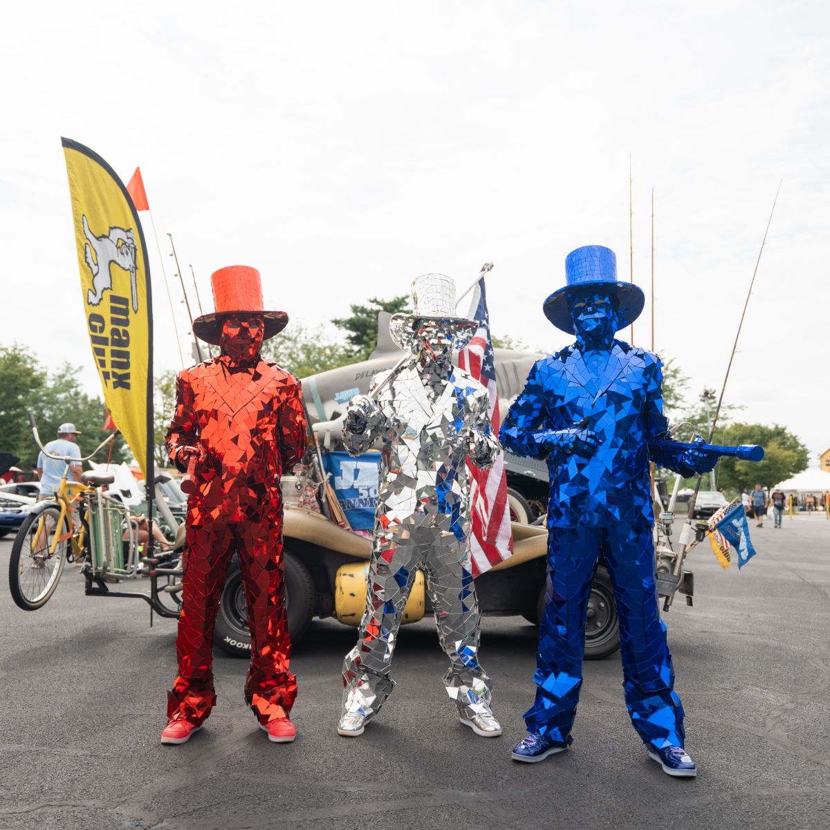 AmirrorCAN Man: Towering at nearly seven feet tall and dressed in red, white and blue mirror armor, the AmirrorCAN Man brings a patriotic presence to the Fan Zone as part of the celebration of America’s 250th anniversary of independence. Complete with a top hat, cane and American flag, this strolling performer creates fun photo opportunities while interacting with fans throughout race weekend.